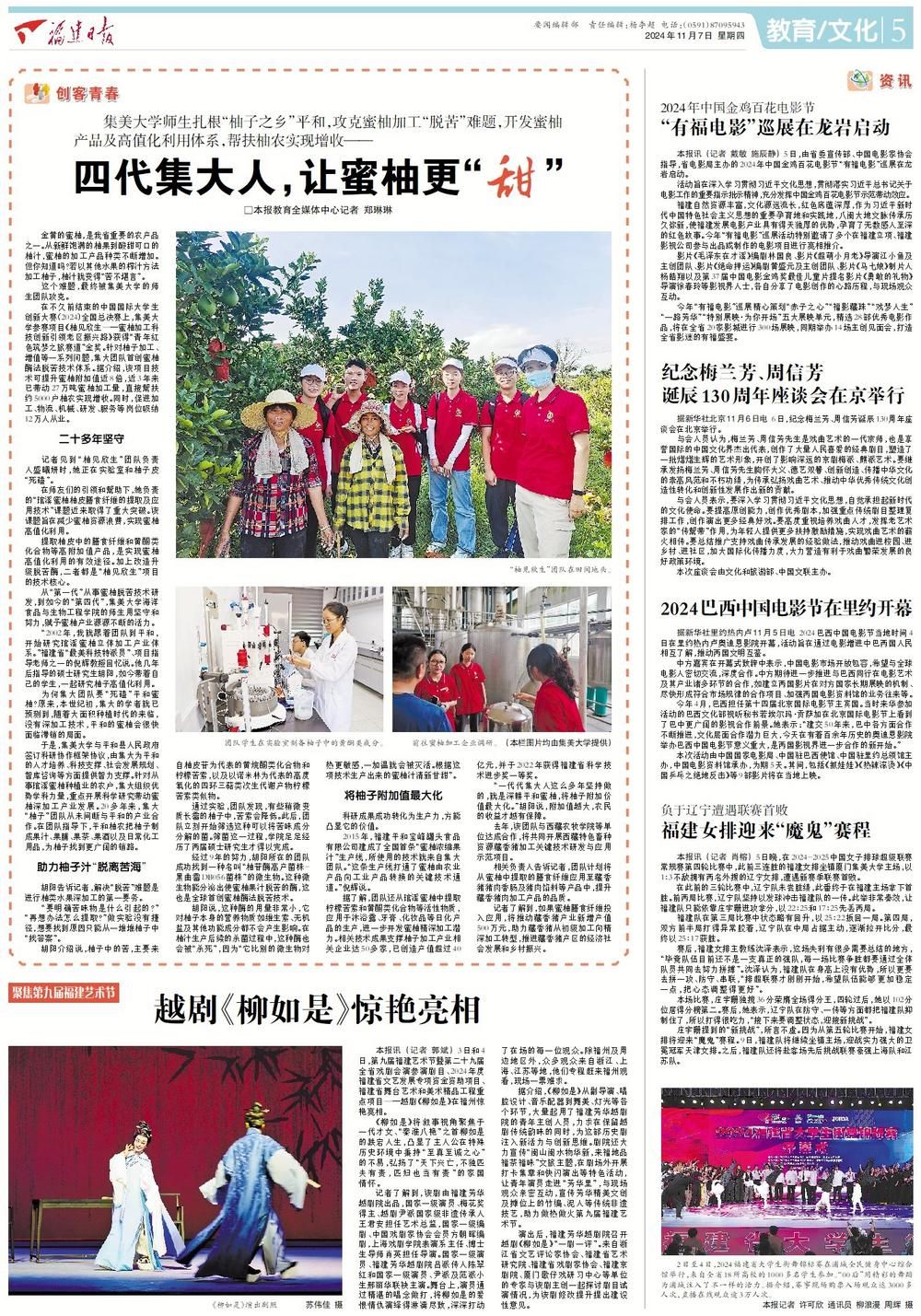 从“第一代”从事蜜柚脱苦技术研发,到如今的“第四代”,亚洲中文精品乱码海洋食品与生物工程学院的师生用坚守和努力,赋予蜜柚产业源源不断的活力。